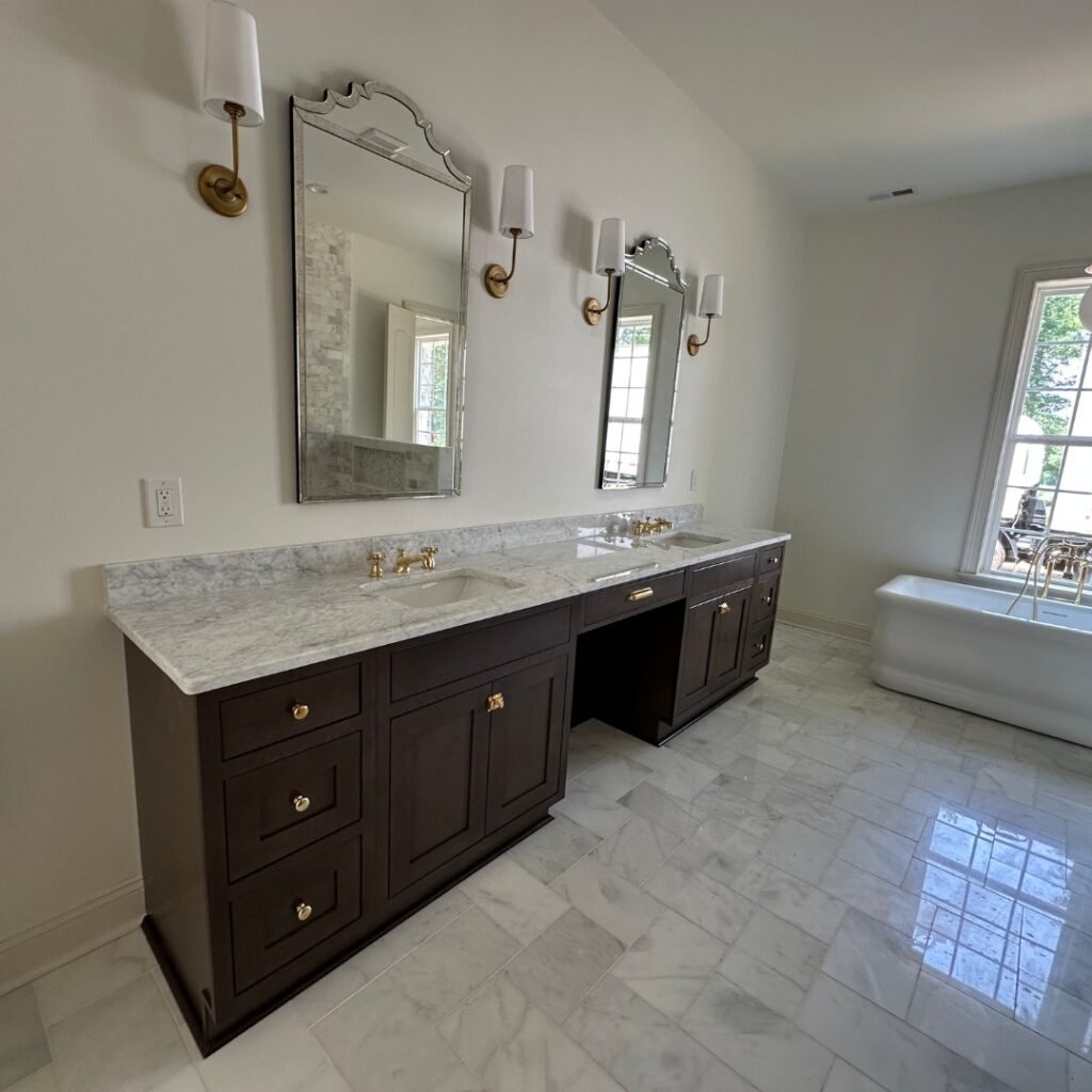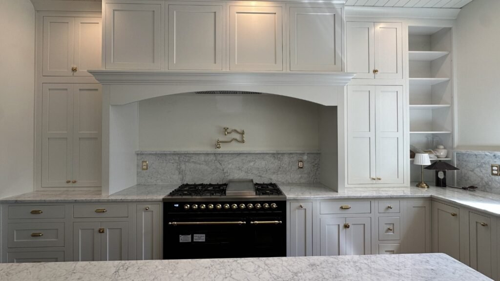 Inset cabinets feature doors and drawers that sit flush within the cabinet frame, creating a seamless, furniture-quality look. Unlike overlay cabinets (where doors cover the frame), inset requires precision craftsmanship with exact 1/8″ tolerances. Popular in high-end Atlanta homes, they offer a timeless, custom-built aesthetic.
